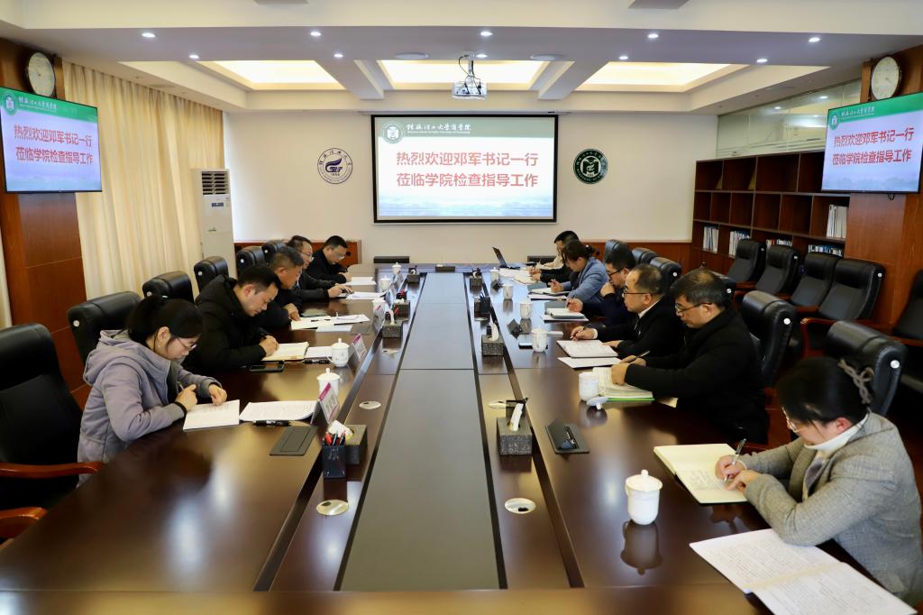 在外国语学院,邓军认真听取了学院党的建设和全面从严治党工作、“强院兴校”和综合改革工作、审核评估工作、2023年重点任务等方面情况的汇报,对学院开学准备工作和近两年取得的工作成效给予了肯定。