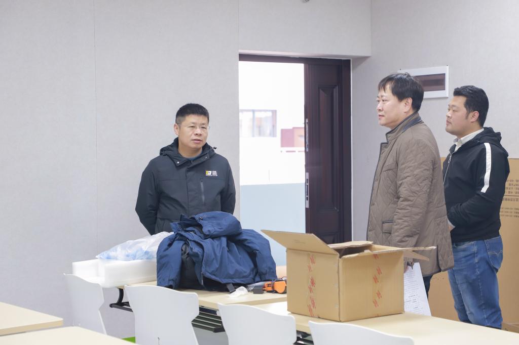 王敦球校长(中)带队在屏风校区国际教育园区一号楼检查附属小学过渡用房安全