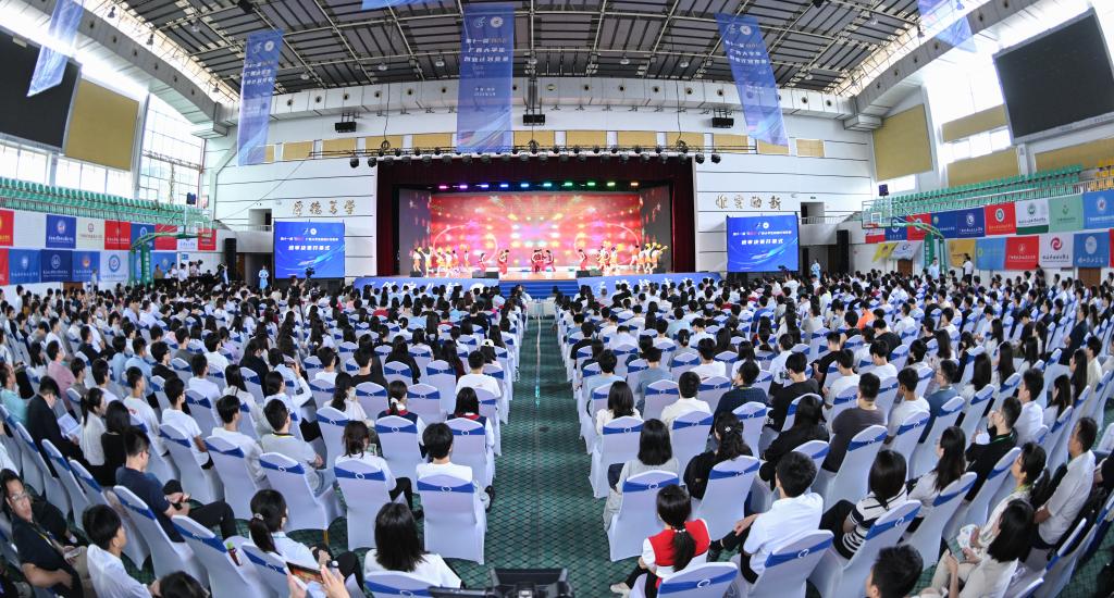 开幕式上,学生代表带来青春舞蹈《未来我来》,院校代表进行校(院)旗入场展示,展现了广西青年学生理想信念坚定、矢志创新创造、青春朝气磅礴、勇立时代潮头的优秀品质。与会领导共同启动本届“挑战杯”广西大学生创业计划竞赛终审决赛。
