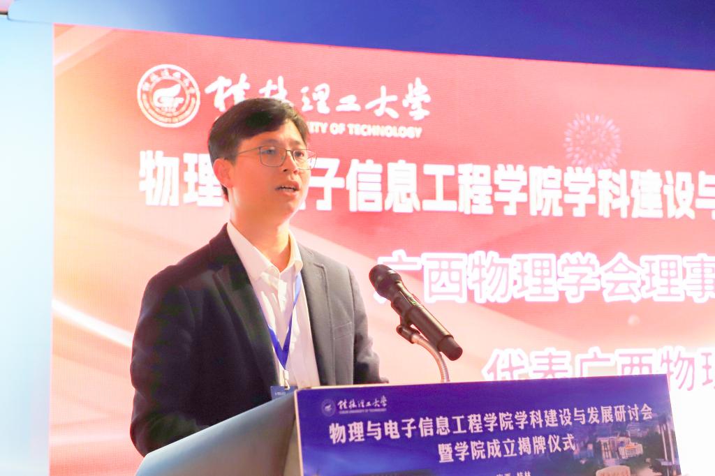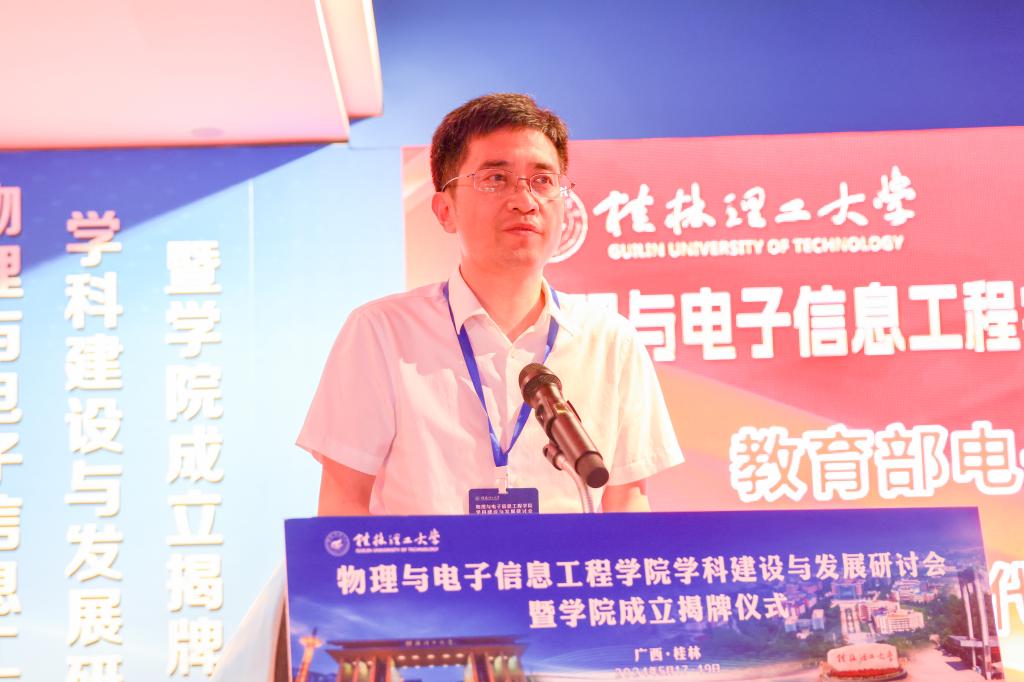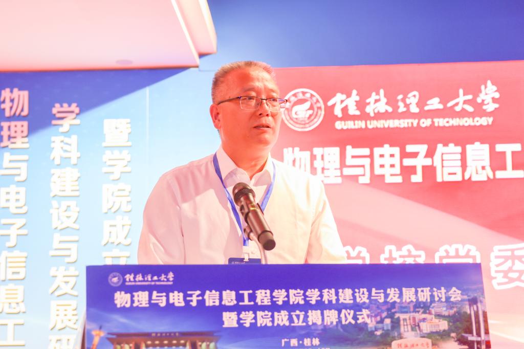 王祥高教授对物理与电子信息工程学院的成立表示热烈的祝贺,对一直关心和支持广西物理和电子信息学科发展的领导、专家们表示衷心感谢。