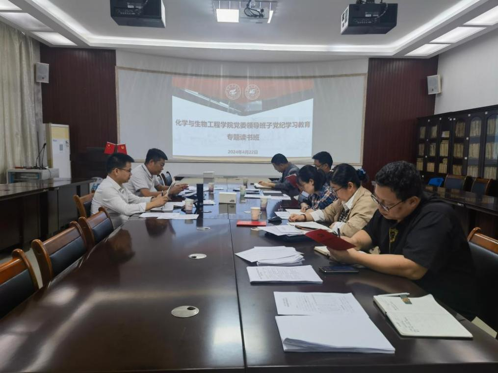 4月17日,化学与生物工程学院党委召开党委(扩大)会议,深入学习贯彻习近平总书记关于党纪学习教育的重要讲话和重要指示精神,贯彻落实中央党的建设工作领导小组会议以及自治区党委部署要求,研究部署了学院党纪学习教育工作具体安排,传达学习邓军同志在学校党纪学习教育部署会议上的讲话精神。4月22日,学院党委领导班子党纪学习教育专题读书班开班并举行第一次集中学习,学院党政领导班子分别领学了《中国共产党纪律处分条例》,同时结合分管工作进行专题研讨。会议还开展了案例教学,通过对6名领导干部严重违反中央八项规定等典型违纪案例的学习,进一步增强纪律意识和规矩意识。