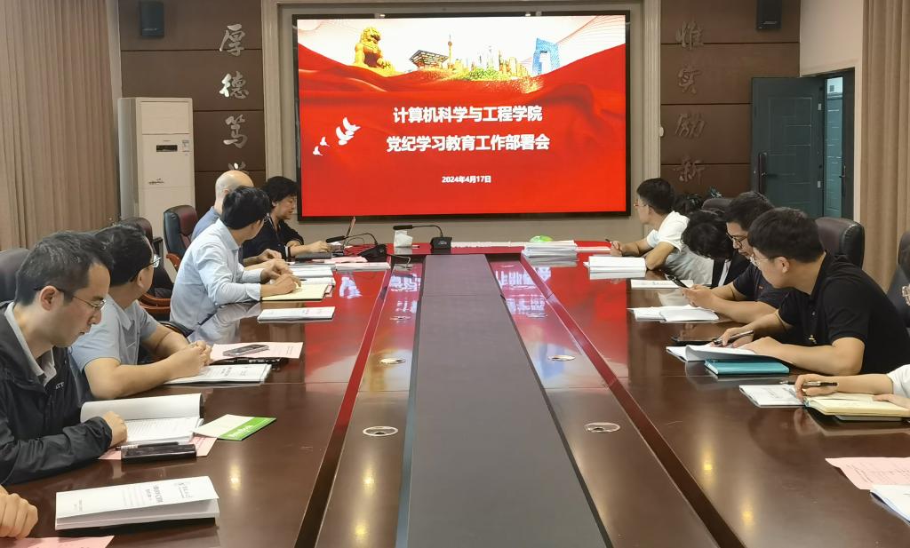 4月17日,计算机科学与工程学院党委召开党纪学习教育部署会。4月17日、24日,学院党委开展了两天的党纪学习教育读书班,通过观看辅导视频、个人领学和集中自学等,扎扎实实学习《条例》。为加强对各支部党纪学习教育的指导,学院党委还统一制作了《计算机科学与工程学院党纪学习教育部署》PPT,学院党员领导干部带头到结对的党支部指导党纪学习教育工作。目前,学院11个党支部全部完成党纪学习教育部署工作并开始学习逐字逐句学《条例》。