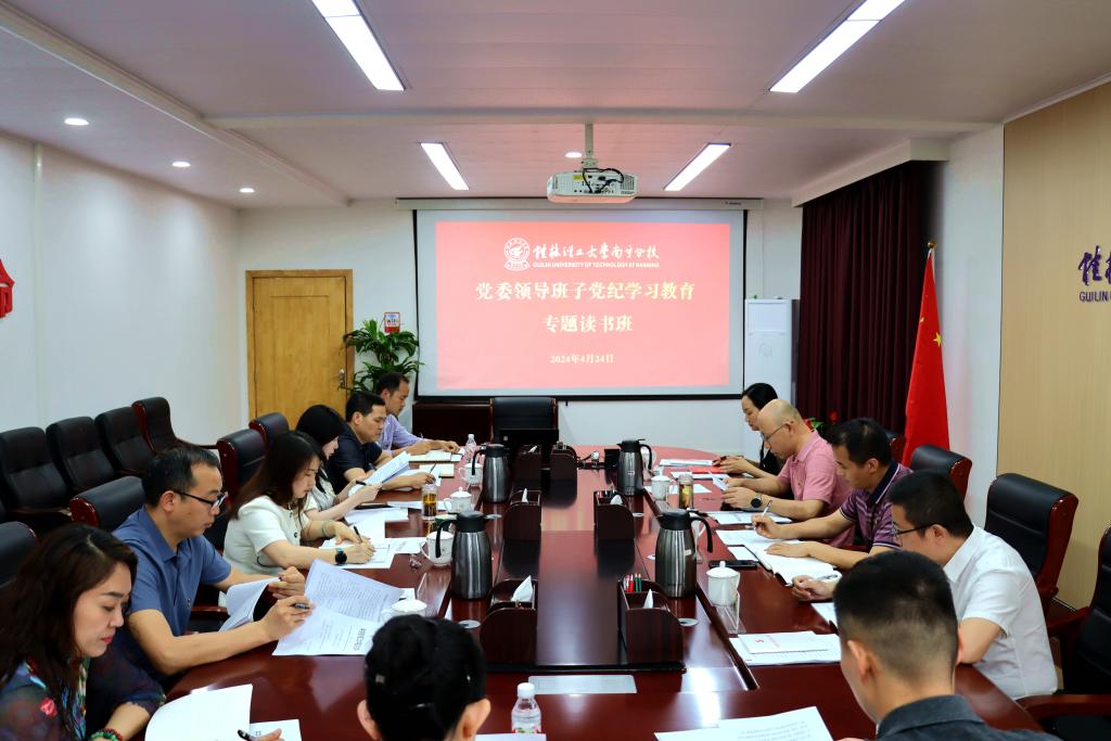4月17日,南宁分校党委召开党纪学习教育工作部署会,传达学校党纪学习教育工作会议精神,部署分校党纪学习教育。认真制定分校党纪学习教育实施方案和专题读书班方案,于4月24日—26日开展了为期两天四次的读书班。全体党员校领导围绕“六项纪律”交流分享了学习体会,并逐章逐条认真学习了《条例》,切实推动党纪学习教育内化于心、外化于行。各党支部通过三会一课、主题党日等形式,逐章逐条学习了《条例》,并通过身边发生的典型案例,进行深入交流研讨,教育引导党员干部学纪、知纪、明纪、守纪,充分发挥党纪和师德师风警示教育作用,全校41个党支部有序开展,反响热烈。