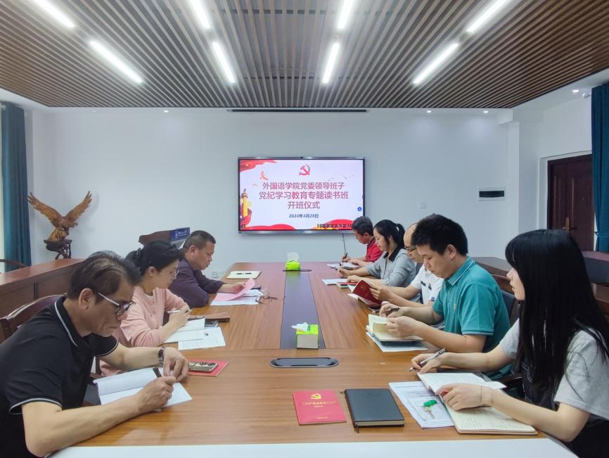 外国语学院党委认真谋划、精心组织开展党纪学习教育,成立党纪学习教育工作专班、制定实施方案,于4月18日召开党纪学习教育启动部署会,同时开展党纪学习教育读书班,认真传达学习习近平总书记关于党纪学习教育的重要讲话和重要指示精神,落实上级和学校党委决策部署。各党支部积极通过“三会一课”“主题党日”主渠道,采取集中学习与个人自学相结合、专题辅导、视频教学、案例分析和互动问答等方式,把党纪学习教育融入日常、抓在经常,确保高质量完成党纪学习教育任务。截至4月28日,学院8个党支部党纪学习教育已全面启动开展。