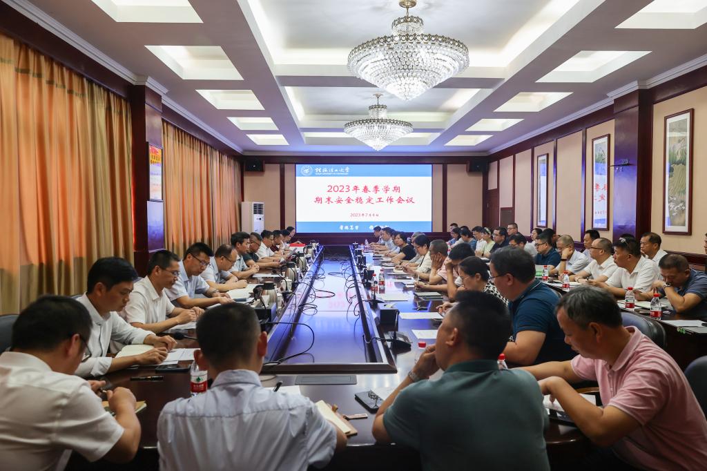 邓军指出,要认真学习贯彻习近平总书记关于安全稳定工作重要指示精神和上级有关安全稳定工作部署要求,进一步增强做好安全稳定工作的思想自觉、政治自觉和行动自觉。要提高政治站位,深刻认识做好期末和暑期安全稳定工作的重要意义;增强忧患意识,深刻认识学校安全稳定工作面临的风险和挑战,进一步增强做好安全稳定工作的责任感使命感;坚持底线思维,着力固底板补短板,切实提升安全稳定工作的实际效果。