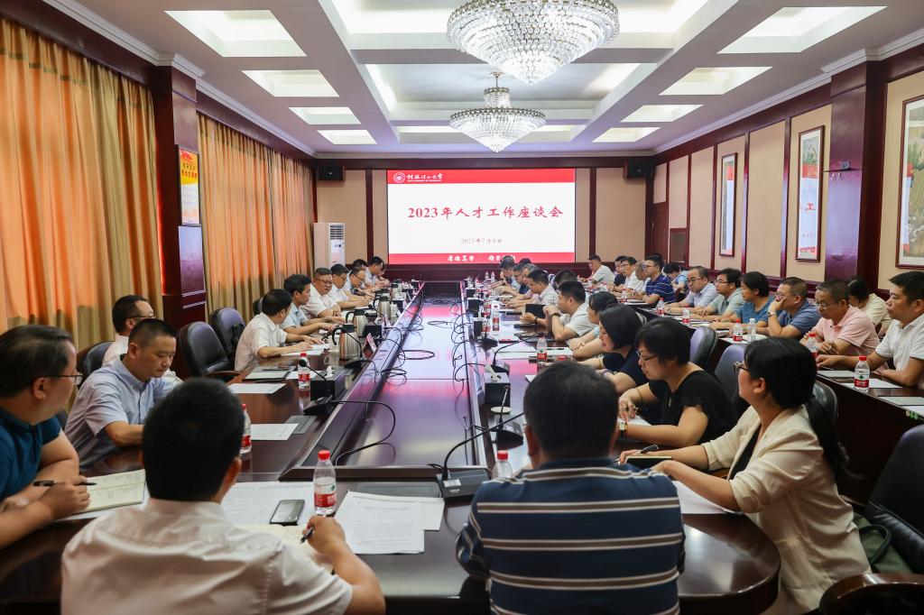 为深入学习贯彻习近平新时代中国特色社会主义思想,全面落实学校党委人才工作会议精神,进一步加强和改进新时代学校人才工作,7月4日上午,学校在屏风校区教八楼三楼会议室召开2023年人才工作座谈会,回顾和总结党委人才工作会议以来,学校加强和改进人才工作的进展情况,认真分析、准确把握当前在人才工作方面存在的主要问题,广泛听取意见建议,汇聚人才智慧,推动学校人才队伍建设水平再上新台阶。学校党委书记邓军出席会议并讲话。党委副书记吴志强主持会议。党委常委、纪委书记韦学敏,党委常委、组织部部长唐壮东,党委常委、宣传部部长叶昊,校长助理潘旦光出席会议。