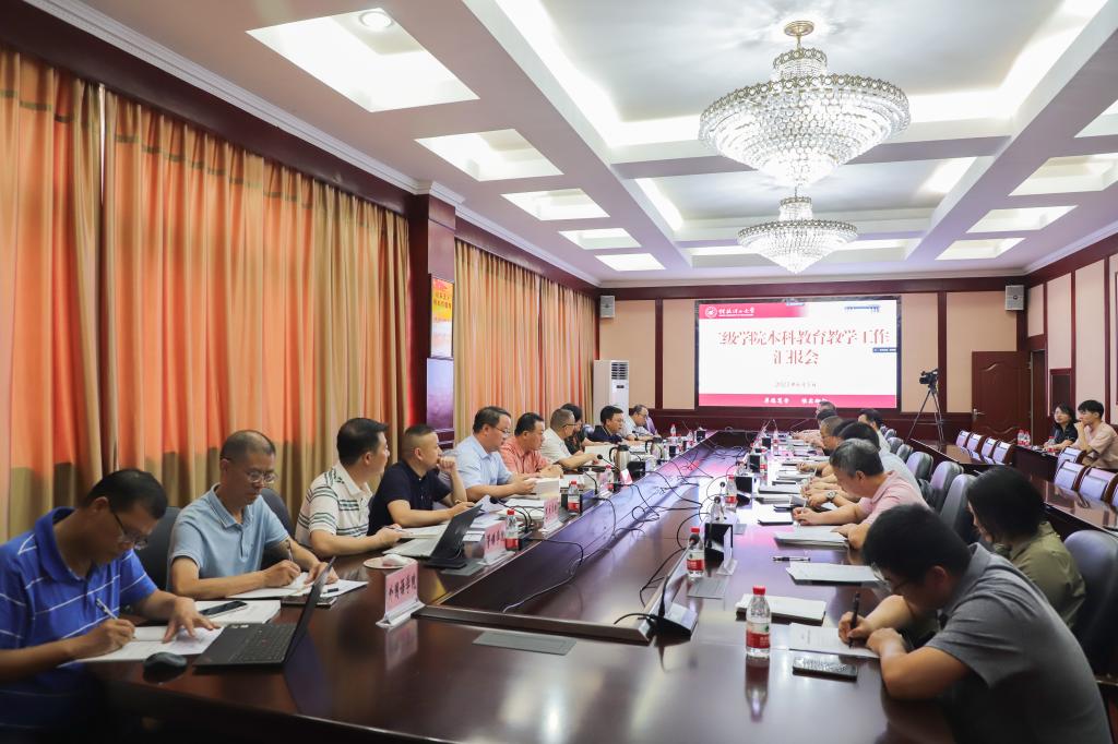 6月5日,beat365在屏风校区教八楼三楼会议室召开二级学院本科教育教学工作汇报会。学校校长王敦球、副校长王玫出席会议。党委委员、校长助理罗盛锋,各二级学院主要负责人参加会议。