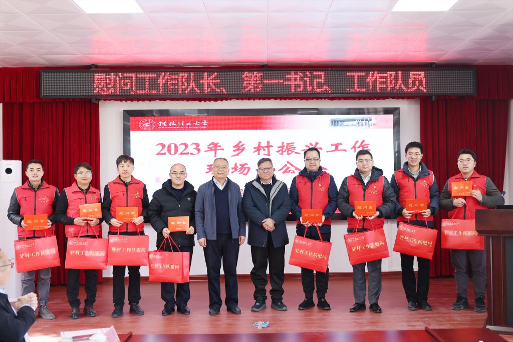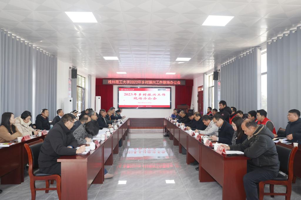 为深入学习贯彻习近平总书记视察广西时的重要讲话精神和中央关于乡村振兴工作的重要部署,全面总结学校2023年乡村振兴帮扶工作,进一步分析工作形势任务,助力灌阳县深入巩固拓展脱贫攻坚成果、加快推进乡村全面振兴,12月25日,学校领导赴灌阳县开展乡村振兴工作调研,召开2023年乡村振兴工作现场办公会,看望慰问驻村第一书记和工作队员,举行“灌阳县乡村振兴人才培训与名特优产品服务中心”揭牌仪式,实地调研乡村振兴帮扶项目并走访慰问监测对象。