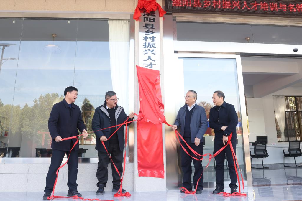 邓军书记、王敦球校长、孙清洪县长、唐文政副书记共同为“灌阳县乡村振兴人才培训与名特优产品服务中心”揭牌