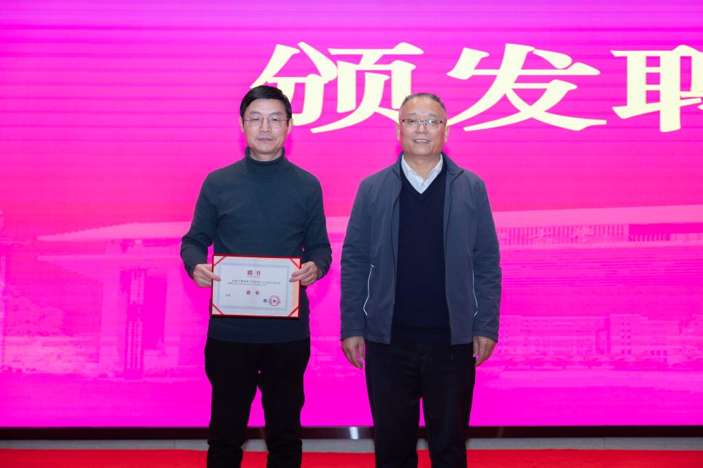王敦球校长向新任绍兴校友会会长张大中颁发聘书