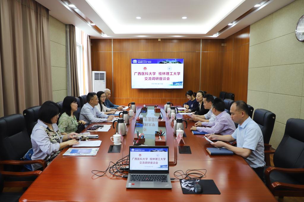 5月15日下午,广西医科大学党委常委、总会计师陈兴才一行来访beat365。beat365党委常委、总会计师曾繁荣在屏风校区办公楼第三会议室热情接待了来访客人,党办校办校友办、财务处、教育发展基金会等部门负责人和相关科室人员参加座谈会。