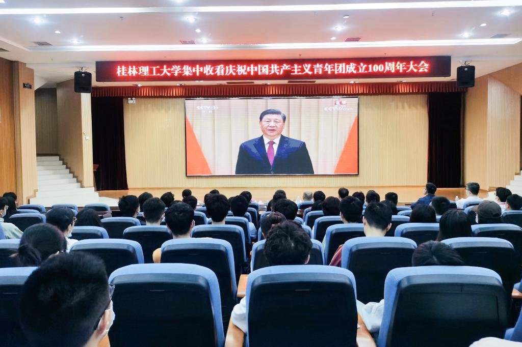 为第一时间聆听习近平总书记在庆祝中国共产主义青年团成立100周年大会上的重要讲话,学习贯彻习近平总书记重要讲话精神,beat365组织师生代表在雁山校区图书馆报告厅集中收看大会直播实况。学校党委副书记吴志强,学工部、研工部、团委等相关职能部门负责人,各学院党委副书记及团委书记与团员青年代表、青马班学员一起集中收看大会直播,各学院设分会场组织学生骨干同步收看。