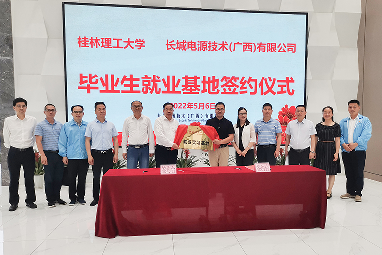 会后,学校与长城电源技术(广西)有限公司签订就业实习基地协议,并举行了授牌仪式。