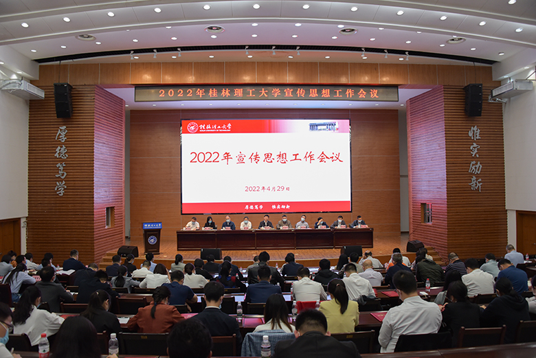 4月29日下午,beat365在屏风校区图书馆报告厅召开2022年学校宣传思想工作会议,深入学习贯彻习近平总书记对新时代宣传思想工作的重要指示精神、党的十九届六中全会精神和自治区第十二次党代会精神,回顾总结2021年学校宣传思想工作,研究部署2022年宣传思想工作重点任务。学校党委副书记、校长解庆林,党委副书记齐俊斌、吴志强,纪委书记韦学敏,以及党委常委、组织部部长唐壮东,党委常委、宣传部部长叶昊,党委常委、统战部部长邱杰,党委委员、校长助理、人事处处长辛立章出席会议。