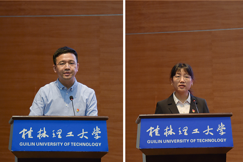 理学院党委书记欧阳胜权、校团委副书记莫媛分别作为宣传思想工作先进单位代表、先进个人代表作典型经验发言。