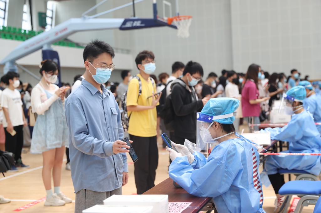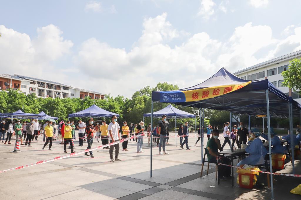 本次核酸检测分别在两校区共设置7个核酸检测点,学校根据各部门、学院人数等情况,采取分组、分时段、分人群的方式进行错峰检测。检测现场划分了核酸检测登记区、采集区,设置“一米线”和隔离带,学校师生员工等参加核酸检测人员严格保持间隔、佩戴口罩,分批、有序进入核酸采样区进行咽拭子采样。学校各单位相关工作人员和师生志愿者们严格按照防疫要求做好疫情防控与秩序维护等工作。