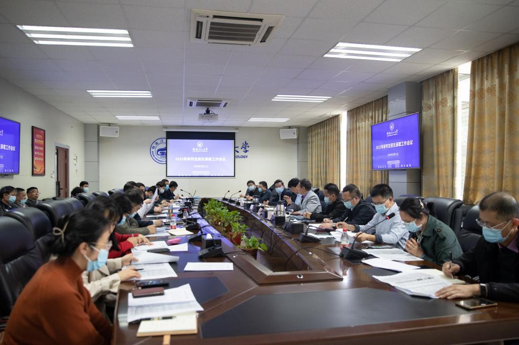 会上,研究生院负责人传达了教育部有关研招复试录取工作会议精神,汇报了学校2022年硕士研究生复试录取办法和招生计划分配方案的制订情况,对复试录取的具体工作进行安排布署。
