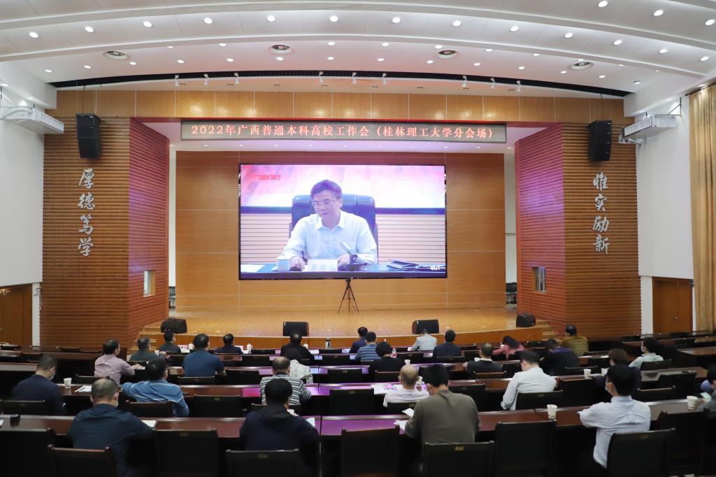 beat365在屏风校区图书馆报告厅设立分会场。学校校长解庆林,副校长王玫、周国清、梁福沛,总会计师曾繁荣出席会议。学校相关职能部门负责人、广西本科高校教学指导委员会委员、广西普通本科高校示范性现代产业学院负责人参加了本次会议。南宁分校设立分会场。