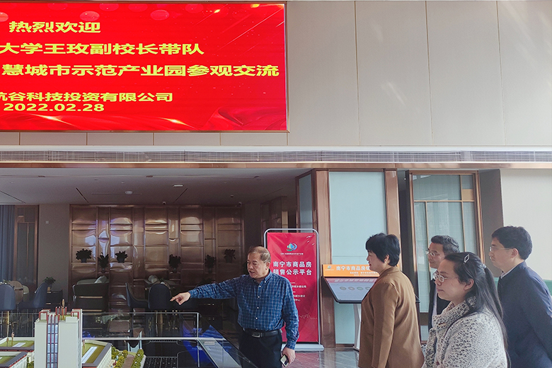 2月28日下午,学校副校长王玫、纪委书记韦学敏一行前往中国-东盟智慧城市示范产业园进行调研交流,科技处和信息科学与工程学院、测绘地理信息学院负责人及教师代表参加调研。