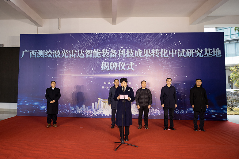 随后,出席仪式的领导共同为广西测绘激光雷达智能装备科技成果转化中试研究基地揭牌。