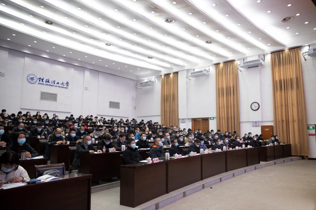 根据学校党委工作安排及学校处级领导干部考核测评要求,1月4日下午,学校在屏风校区图书馆报告厅召开二级学院党委书记抓基层党建工作述职测评大会。在家校领导解庆林、吴志强、王玫、周国清、梁福沛、王敦球、韦学敏、邓国彬、曾繁荣出席会议,学校党委副书记齐俊斌主持会议。全体中层干部,各二级学院党委委员、党支部书记代表参加会议。