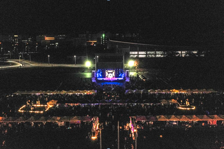 本次活动设置有夜跑区、社团巡礼区以及活动主会场三个区域,同步开展荧光夜跑、社团巡礼以及学校新生才艺大赛决赛。