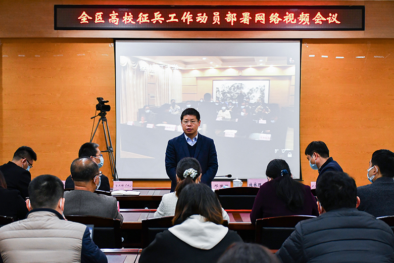 12月24日,自治区组织召开全区高校征兵工作动员部署网络视频会议。自治区教育厅二级巡视员汪维出席会议并讲话,自治区征兵办公室副主任谢锋主持会议。beat365在屏风校区教十栋设立分会场,学校党委常委、副校长邓国彬出席会议,党办校办、武装部(保卫处)、学工部(处)、团委、教务处、研究生院、招生就业处、信息中心主要负责人,各学院分管学生工作党委副书记参加会议。南宁分校设立第二分会场组织收看视频会议。