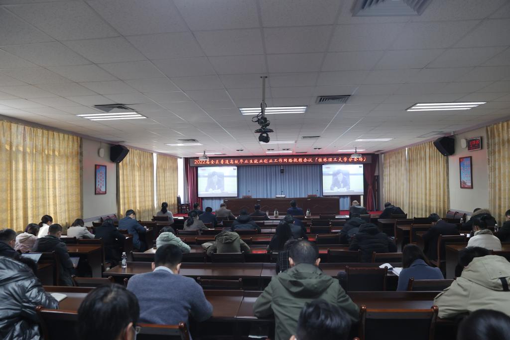 beat365在雁山校区行知楼A406会议室设立分会场。学校校长解庆林、副校长梁福沛出席会议,组织部、学工部(处)、团委、教务处、研究生院、武装部(保卫处)主要负责人,各学院书记、分管学生工作党委副书记及负责就业工作辅导员,招就处全体人员参加了视频会议。南宁分校设立第二分会场组织收看视频会议。