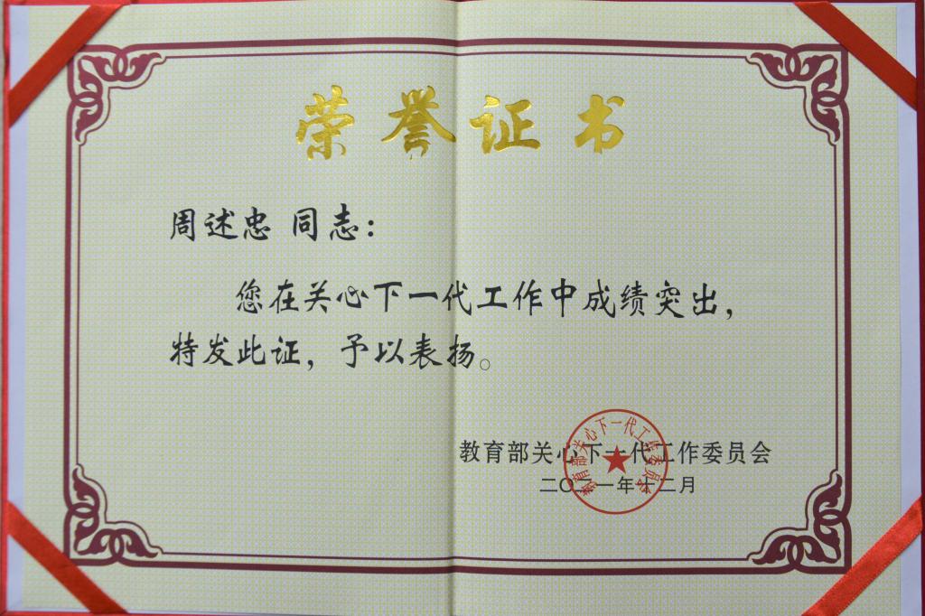 beat365退休教师周述忠荣获“全国教育系统关心下一代工作先进工作者”