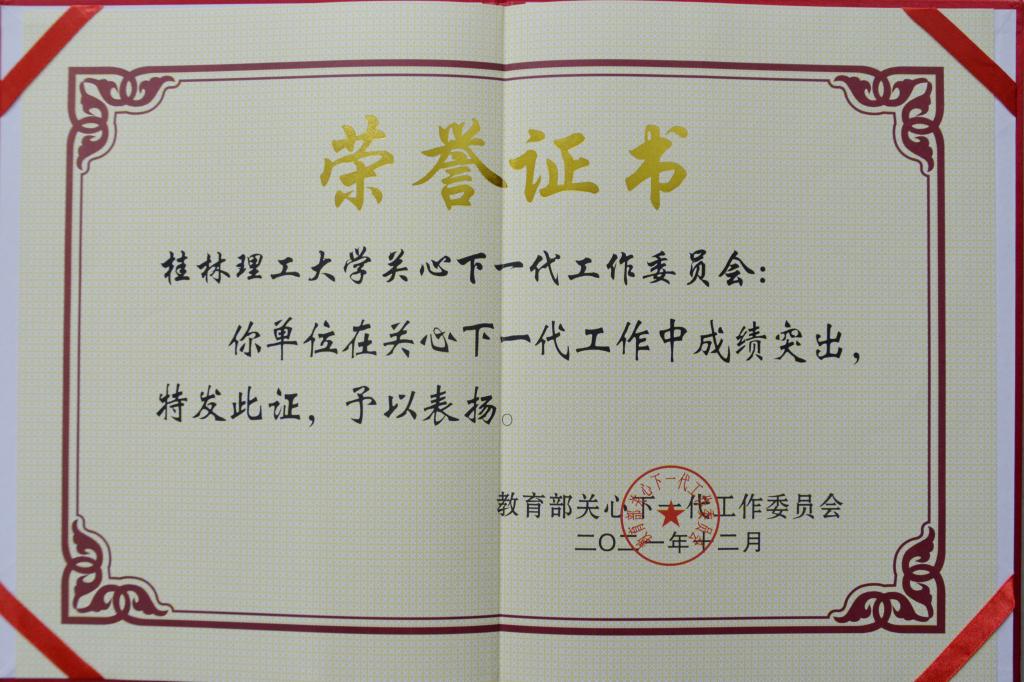 近年来,学校深入贯彻落实习近平总书记关心下一代工作重要指示精神,高度重视关工委工作,大力弘扬“五老”精神,不断加强关工委组织建设,把关心下一代工作融入大党建格局,紧扣“立德树人”根本任务,依靠两支骨干队伍,强化四个平台建设,打造四个品牌,彰显桂工特色,在加强青年师生理想信念教育和思想道德建设、帮助青年师生成长成才等方面发挥了积极作用,取得了显著成效。