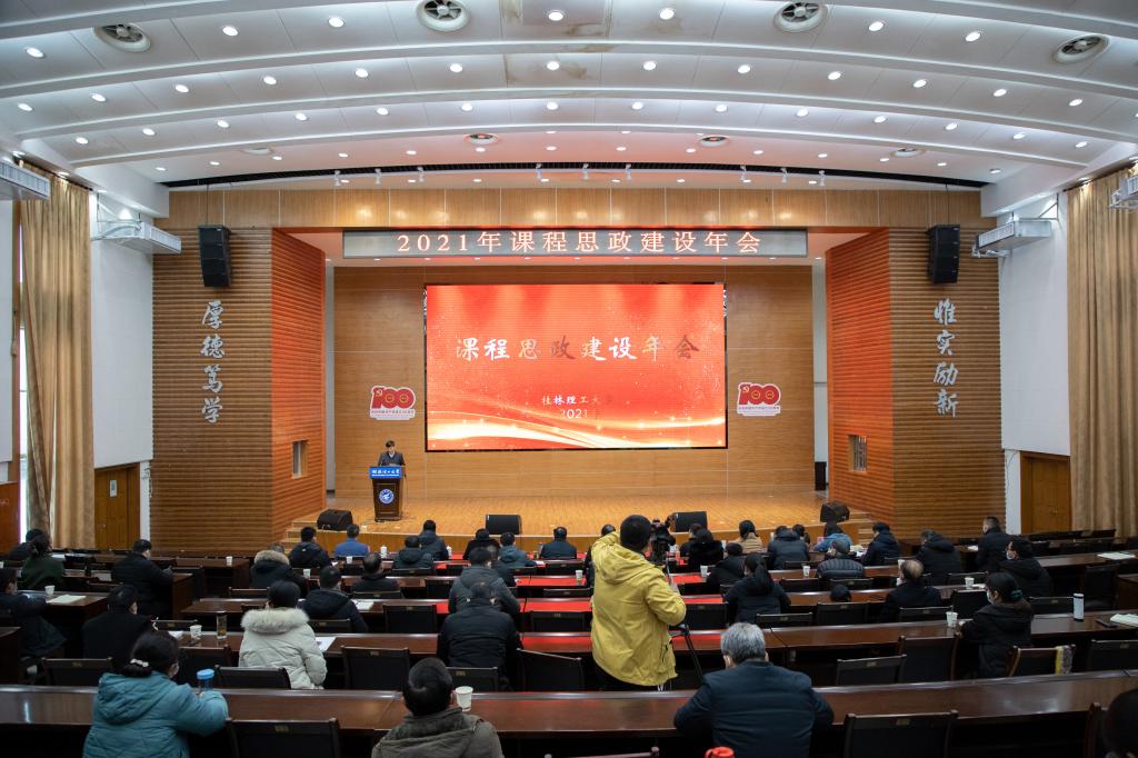 为深入学习贯彻习近平总书记关于教育的重要论述和全国教育大会精神,落实立德树人根本任务,提高学校整体思政工作水平,12月29日,学校在屏风校区图书馆报告厅召开2021年课程思政建设年会。学校党委副书记、校长解庆林出席年会,学校副校长梁福沛主持年会。宣传部、人事处、学工处、团委、研究生院、发展规划与教学质量监控中心、教务处、人文素质教育教学部、继续教育学院主要负责人,各二级教学单位书记、院长、分管教学副院长,结对共建导师代表以及教务处相关人员参加会议。17个二级教学单位和南宁分校通过线上直播参加会议。
