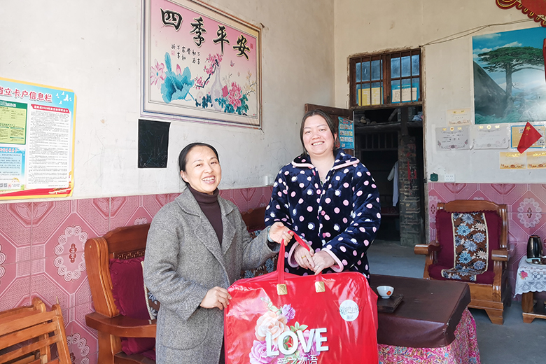 帮扶联系干部为帮扶对象送上“暖冬关怀”慰问品
