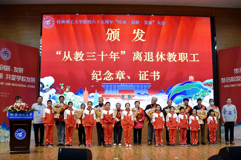 解庆林表示,建校65年来,学校始终以立德树人为己任,一代代桂工人接续奋斗、砥砺奋进,推动学校各项事业取得优异成绩,培育出满园桃李、无数栋梁。同时,遍及海内外的30多万名桂工校友,传承和弘扬“桂工精神”,在各自的领域埋头实干,成为了业务能手、行业骨干、管理精英、创业赢家等,为国家和经济社会发展作出了重要贡献,为母校赢得了良好的社会声誉。