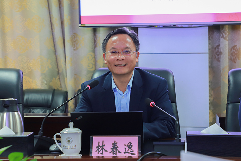 全区高校思想政治理论课教学巡察专家组组长、广西师范大学副校长林春逸教授在教学巡查反馈会上讲话