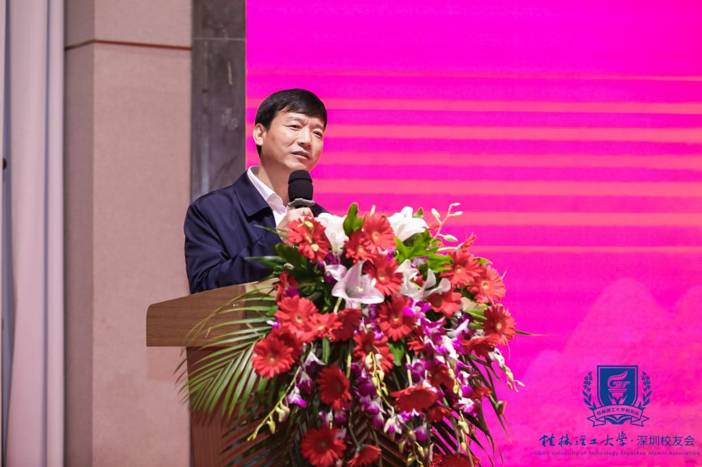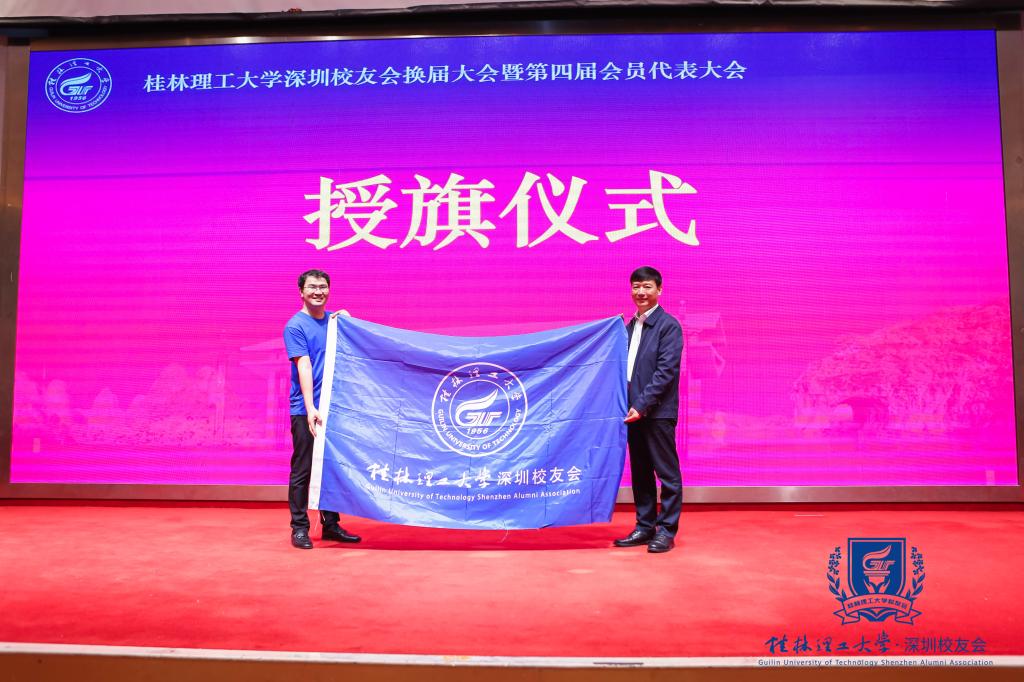 最后,解庆林为新任深圳校友会理事会会长冀志磊颁发聘书并授旗。在讲话中,解庆林充分肯定了上一届校友会作出的贡献,并对深圳校友会的成功换届表示祝贺,向各位深圳校友长期以来对母校的关心和支持表示感谢。解庆林向与会校友代表介绍了近年来学校发展取得的成绩,并提出三点希望:一是要旗帜鲜明讲政治。作为桂工人,无论何时何地都要增强“四个意识”,坚定“四个自信”,做到“两个维护”,爱国爱党爱人民,始终做到不忘初心、牢记使命;二是要精诚团结讲奉献。希望深圳校友会能够以本次换届为契机,加强组织机构建设,进一步加强广大校友的联系,团结互助,携手共进,感恩社会,奉献国家;三是要更加关心母校的建设发展。校友会要努力成为校友与母校、校友与校友之间联系的桥梁,服务多方面交流,促进项目合作,实现合作共赢。真诚欢迎各位校友常回母校看看。