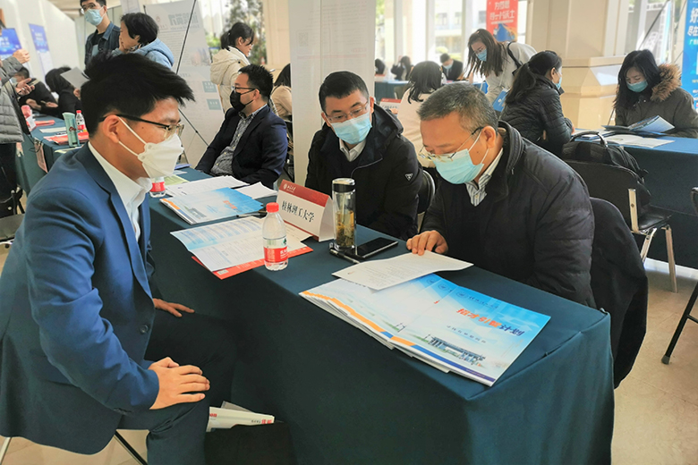 王敦球副校长(右)带队参加2021年广西重点领域急需紧缺高层次人才招聘会