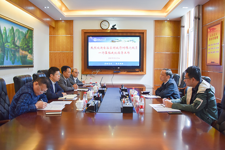 10月11日下午,自治区财政厅巡视员何伟、资产管理处主任刘通一行来beat365调研指导。学校党委常委、副校长邓国彬出席座谈会,资产管理处、财务处、资产公司等单位相关负责人参加座谈会。