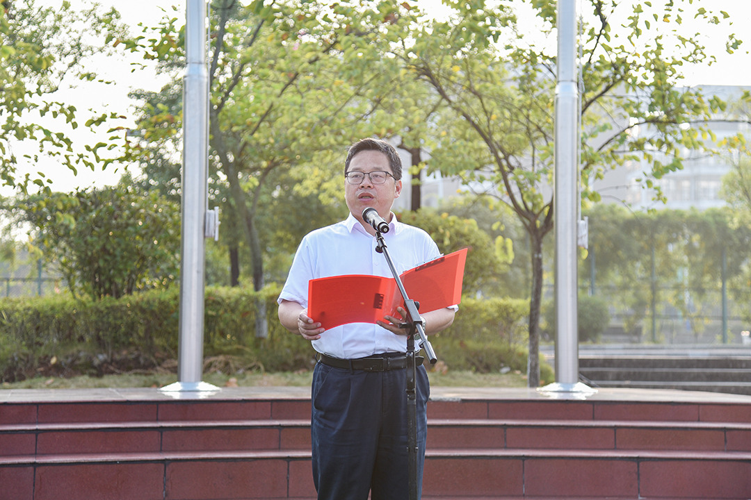 吴志强副书记在讲话中与现场师生一起回顾了中华人民共和国成立72年来取得的伟大成就。他勉励广大同学要将习近平总书记的期望牢记于心,坚守理想信念,锤炼忠诚品格,自觉将个人成长成才同国家发展紧密结合起来,用青春和激情绘就祖国辉煌的蓝图,用智慧和汗水开创学校美好的未来,为实现中华民族伟大复兴贡献自己的青春和力量!