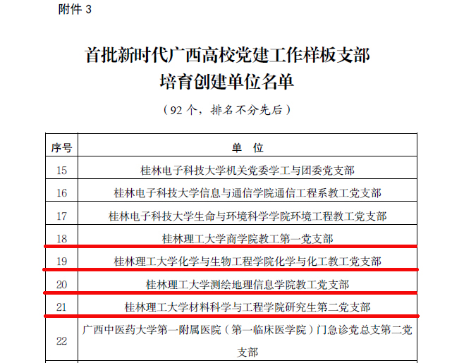 首批新时代广西高校党建工作标杆院系培育创建单位名单截图
