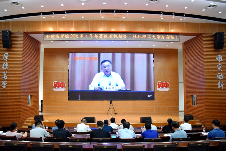9月15日下午,全区高考综合改革工作部署推进会议在南宁召开,自治区人民政府副主席黄俊华出席会议并讲话,自治区人民政府副秘书长唐宁主持会议。beat365在屏风校区图书馆报告厅设立分会场,学校党委书记李国忠、总会计师曾繁荣出席会议,学校招生就业处、教务处、各二级学院主要负责人参加会议。