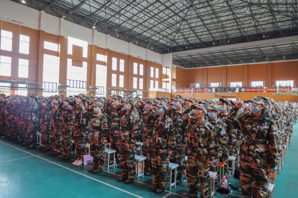 军训承训部队、武警广西总队训练基地主任黄世同在讲话中强调了高等学校开展军事训练的重要意义,并希望南宁分校2021级新生提高认识,积极自觉地参加军训,认真训练,切实提高军事技能,严明纪律,培养良好行为习惯。全体教官、学生要严格遵守学校的各项规章制度和军训要求,时刻保持“流血流汗不流泪,掉皮掉肉不掉队”的精神,坚决完成各项军训任务。