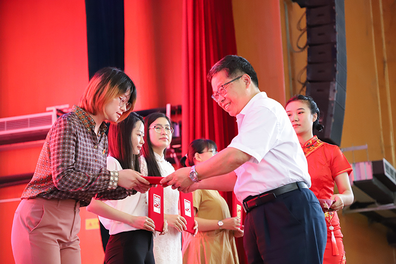 典礼在庄严的国歌声中拉开序幕。学校党委副书记吴志强为新生辅导员、班主任代表颁发聘书。