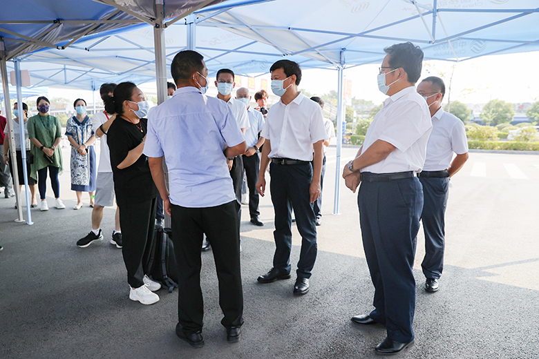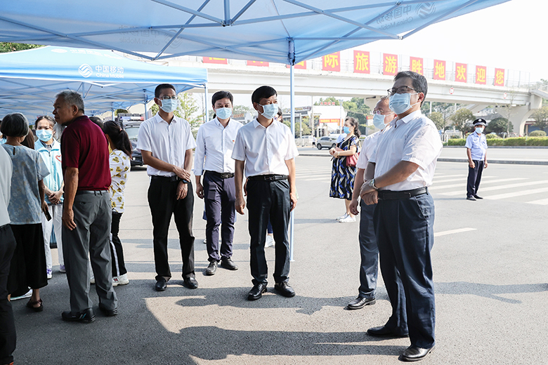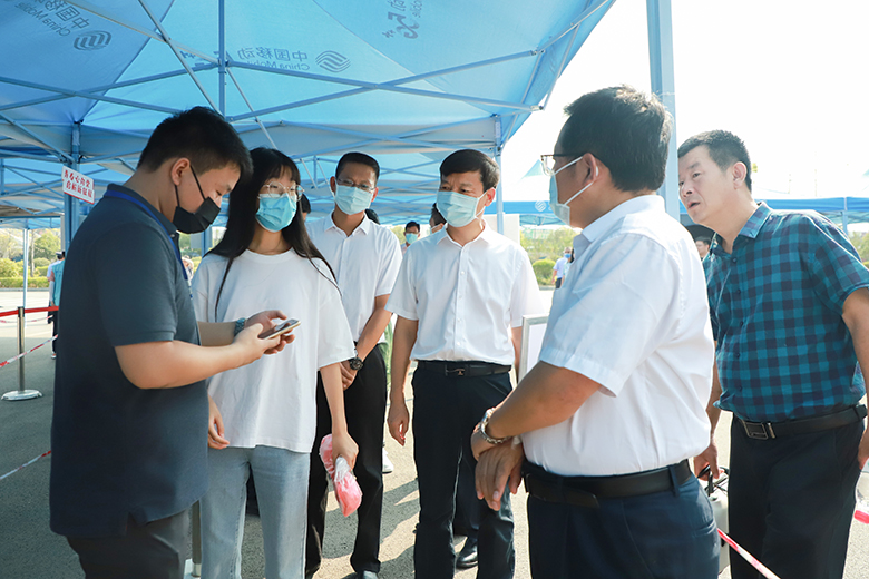 校领导一行分别到雁山、屏风校区迎新现场,检查新生入校流程和疫情防控工作情况,与新生家长亲切交谈,对新冠肺炎疫情防控原因不能让家长进校表示歉意,并请家长放心,学校、学院和老师会全心关爱学生,密切家校联动,形成育人合力,共同把学生培养成栋梁之材。