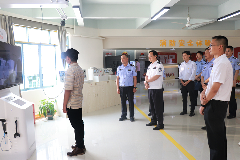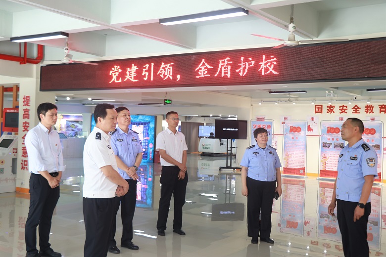 7月20日下午,桂林市副市长、市公安局局长罗贤瑞,市交警支队支队长刘风雷一行到beat365大学生安全教育基地参观指导工作,雁山公安分局、雁山交警大队领导及beat365学生工作部(处)、武装部保卫处主要负责人陪同。