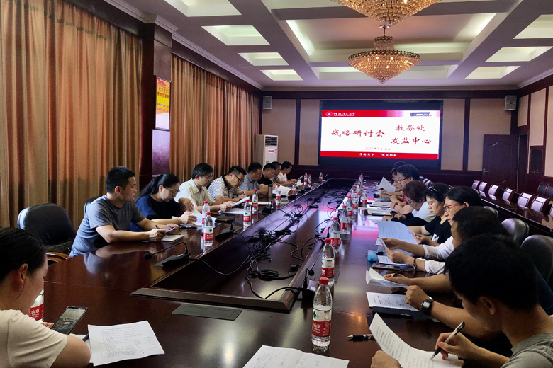 为落实学校“十四五”开局争先、明确方向、凝聚力量的工作部署,推动学校本科教学工作高质量发展,7月12日下午,教务处、发监中心在屏风校区教八楼三楼会议室联合召开了战略研讨会。梁福沛副校长出席会议。教务处、发监中心、创新创业学院主要负责人及科级以上干部参加了会议。