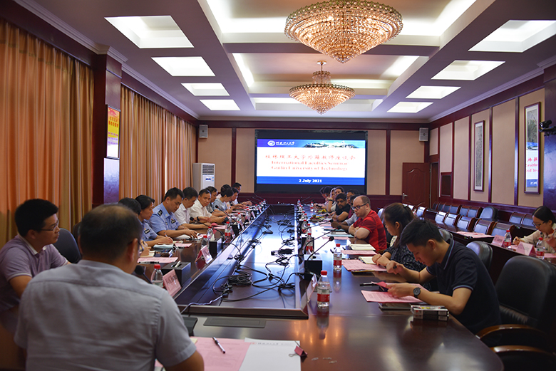 7月2日,学校在屏风校区教八楼会议室召开2021年外籍教师座谈会。周国清副校长出席会议,国际交流处、人事处、科技处、相关学院负责人,学校全体外籍教师参会。会议还邀请桂林市出入境管理处民警到场就出入境相关法律法规进行宣讲和答疑。