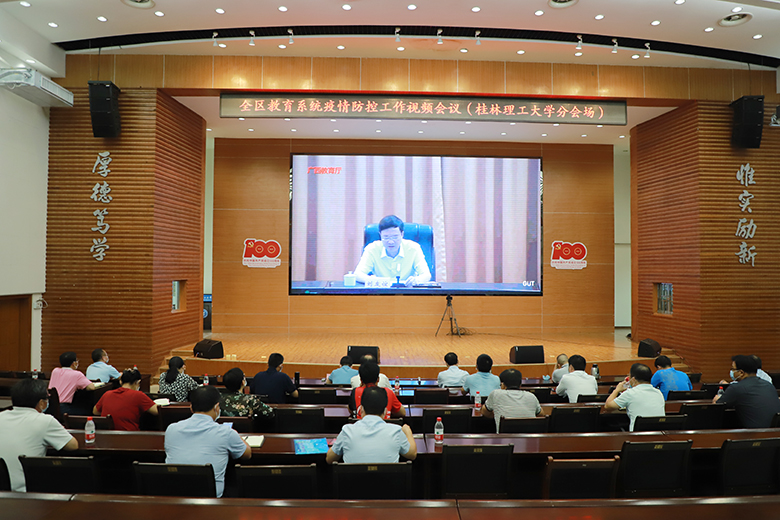 8月10日下午,自治区教育厅召开全区教育系统疫情防控工作视频会,对全区教育系统疫情防控和秋季开学工作进行部署。自治区党委教育工委书记,教育厅党组书记、厅长刘友谊出席会议并讲话。会议由自治区教育厅党组成员、副厅长李清先主持。beat365在屏风校区图书馆报告厅设立分会场,学校校长解庆林、副书记吴志强、副校长王敦球出席会议,学校新冠肺炎疫情防控工作领导小组指挥部各小组组长,党办校办、学工部、研工部、校医院、后勤集团、保卫处、国教院、继续教育学院、教务处、附属小学、人事处、资产处、团委、社区办、南宁分校等部门相关负责人出席会议。