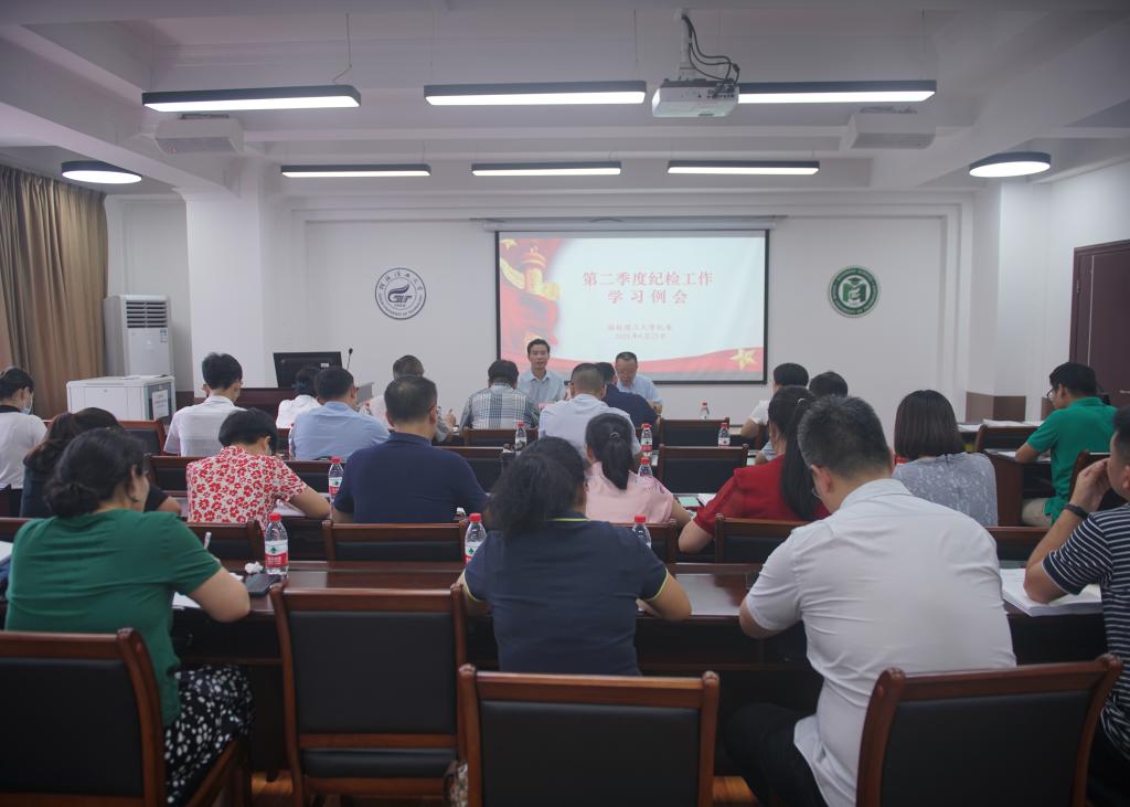 6月23日,学校纪委在屏风校区7309会议室组织召开第二季度纪检工作学习例会。学校纪委书记韦学敏出席会议并讲话。学校纪委委员,专职纪检干部,二级党组织纪委书记、纪委委员、纪检委员等参加会议。