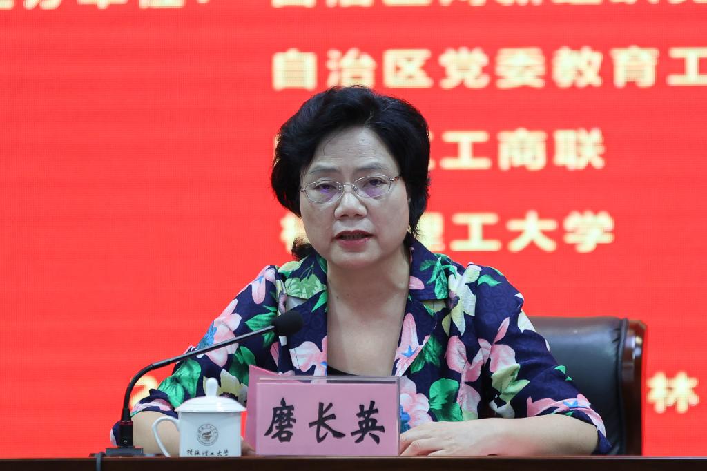 磨长英指出,本次宣讲活动是贯彻落实党中央、全国工商联和自治区党委关于开展党史学习教育重要部署,深入开展党史学习教育的一项重要内容,更是学习贯彻习近平总书记在广西考察重要讲话和重要指示精神的一项务实举措。她指出,beat365官方网站以应用型高级专门人才培养为目标定位,建校60余年始终遵循“厚德笃学、惟实励新”校训,传承和弘扬“艰苦创业、敬业奉献、团结协作、开拓创新”的桂工精神,坚持“科技强校、人才兴校”办学理念,以立德树人为根本任务,以服务国家重大需求和地方经济社会发展为己任,围绕服务自然资源行业和工业高质量发展凸显办学特色,在人才培养、科学研究、社会服务等方面取得了一批标志性成果。