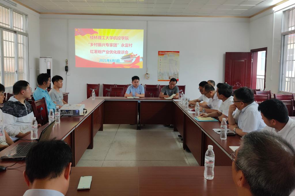 在灌阳县永富村,全体师生党员参观了永富村红薯粉加工基地,并在永富村委会议室召开了“乡村振兴专家团”永富村红薯粉产业优化座谈会。专家团成员和永富村第一书记及村"两委"干部进行了面对面座谈交流,为永富村红薯粉产业优化积极建言献策。接下来,学院专家团将针对红薯粉产业存在的问题进行认真梳理,拿出切实可行的技术方案。